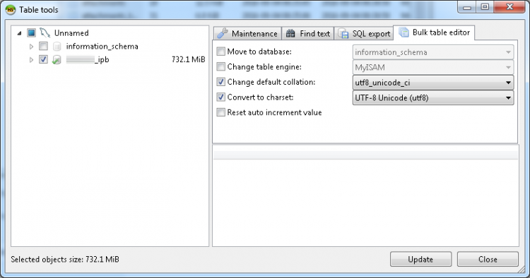 Next, I click on Check and fix UTF-8 collations button, and after a few seconds I get an error: