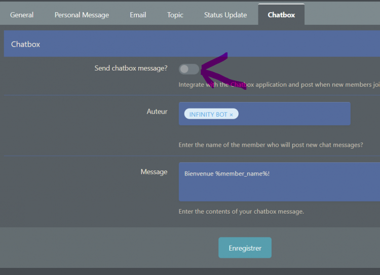 And my secondary problem is that I can't activate the chat box message while someone join the forum with