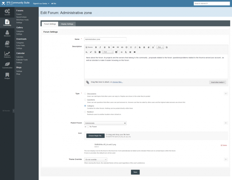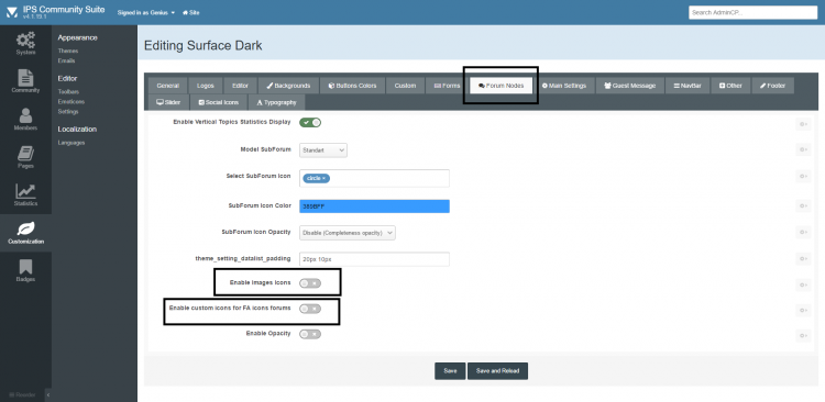 next steep < i turn on "Enable custom icons for FA icons forums" and save and reload