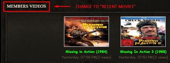 19. How or where do I change this header title for the recent movies box on IPB 3.4.8 from "MEMBERS VIDEOS" to something like "MOST RECENT MOVIES" This is the box that is displayed on the main menu page that shows the most recent "X" number of files (videos) uploaded to the videos section.