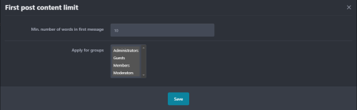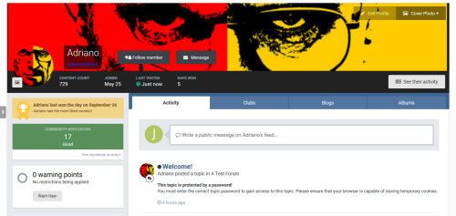 This plugin will allow users to create topics using the password to protect them. This plugin uses cookies to store the encrypted password. Areas covered: Topic Topic preview popup on forum view Activity Stream Search results User Content RSS: topics with passwords are excluded from the RSS feed Settings: Groups allowed to create topics with password Groups are allowed to read topics without typing the password Which forums can have their topics created using a password Log topic password actions: add a password, edit the password, and remove the password Number of days to expire the Cookie -