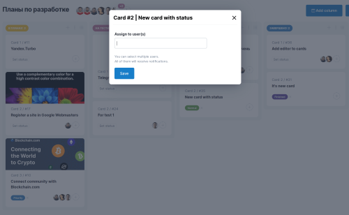 Task Manager for Invision Community. Allows users with access to create boards, columns, and task cards. You can change the status of tasks, as well as assign them to specific users, who will receive a notification after the assignment and more. Boards In the ACP, you can create an unlimited number of task boards. Each board can have its own description. The board card contains information on how many columns, tasks, and editors it contains. The board has an activity section where all user actions are recorded. Columns Columns of tasks exist on a specific board and contain cards (tasks). Each column has its own name and highlight color. Columns can be swapped on the fly using Drag-and-drop technology. Columns can only be created by board editors, and you can add an unlimited number of them. Task cards The card has its own name, description, background color, and cover. Cards can be swapped on the fly using Drag-and-drop technology, as well as transferred between columns. Cards (tasks) can be assigned to other users. After assigning a task, the user will receive a notification. He will also be able to change the status of the card. -