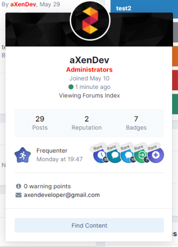 The plugin shows secondary groups on the website in the: Topics Hovercard Profile Search Include with Secondary Groups Icon in the 3.0.0 version. Templates for pHTML files From version 4.0.0, special templates have been made available for developers of custom themes. Profile @param $member - \IPS\Member @param $showTitle - Boolean - Show title widget? (Default: true) {template="aXenProfileSecondaryGroups" group="plugins" location="global" app="core" params="$member, true"} Hovercard @param $member - \IPS\Member {template="aXenHovercardSecondaryGroups" group="plugins" location="global" app="core" params="$member"} Search @param $member - \IPS\Member {template="aXenSearchSecondaryGroups" group="plugins" location="global" app="core" params="$member"} Topics @param $comment - \IPS\Member author {template="aXenTopicsSecondaryGroups" group="plugins" location="global" app="core" params="$comment"} -
