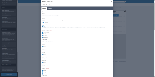 Powerful and versatile 'Topic Feed Block' with loads of options to display Topics/Posts the way you want. I was looking for a block that would fit my needs regarding displaying new posts, and I found the default Topics and Posts block lacking. This hook is based around (but not exactly like) Headstands ‘Recent Posts’ Sidebar block for v3.14. I developed this for my own community. So, in the spirit of open source, I decided to release this hook/widget to spare others looking for something similar and be charged a small fortune at the same time. Description This hook is for displaying a block of the latest (last) posts posted on your forum. Very much like the IPB community Topic block, but instead of showing the topic originator, the last poster information is shown instead. This block comes with the following abilities: Custom block Title: I hate having to go into the language files just to edit a title. Probably won’t help with translations, but that could be changed later. Selectable forums: Select which forums you wish to display posts from. Your members will only see the posts that they have permission to view. Number of Posts: Select how many posts you wish to display to your members. Member Avatar: Select whether to display a member avatar or not. Topic Post Count: Select whether to display a post topic count next to the title. Post Comment: You can display a post teaser in the same way as the IPB Post widget and control how many lines of the post comment you wish to display. And loads more options (Please read the release notice for more information). -