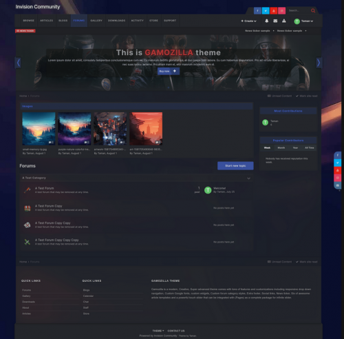 DEMO Key Features Palette 5 color schemes. Dark/Light versions included. One click to switch your website between 5 color schemes. Customize any of the colors schemes you want. All color schemes in palette including background images are user choosable. Check the Demo site if you want to test the palette. Import/Export theme colors. You never lose your color customization's! ? Color Management %99 all theme colors are customizable in theme settings. Without touching a line of code you can change the entire front-end colors all in theme settings. You can also use the palette to export your customized theme colors. Customize colors of Editor, Header & Navigation, Widgets & Titles, Social links, Forms & Toggles, Pagination & tabs, Buttons...etc). Forum Category Styles. Set a custom forum category background, title background...etc Apply a cover on specific forum category. Useful for password protected forums, or forums with permissions. No custom css or coding knowledge is required, All you have to do is selecting forums and apply the customization's. Footer. Enable/Disable footer. show/hide on mobiles or tablets. Custom Editor field column, with a header text and a Truncatable option. Custom HTML field column. provided with a sample for quick links. Get feed from Pages application. Footer background image. All colors are customizable. Custom Widgets. Two custom ck Editor widgets to show on top or bottom of your website. Optionally show it only on specific pages like Registration page, Login page, User profiles ...etc). Set user permissions. Great for guest messages, or custom ads... All colors are customizable Advanced Custom Widgets Plugin. Advanced custom widgets is an additional plugin to purchase, it allows you to add any Sticky or Normal custom TXT and HTML widgets. Each widget you add is fully customizable with its own configuration settings. Social Profiles. Displays a sticky social media icons in the sidebar of your site. Square, Circle icons. Show Contact Us button inside social profiles sidebar. Use custom colors for the icons. Christmas mode. Snowfall mode. Theme add-ons Swiper Slider. Enable/Disable Swiper slider. Permissions. Where to show. Excludable from IPS applications and other pages on the site. Get feed from Pages application. Customize slider height. Show pagination. Show navigation. Autoplay. Autoplay speed. Loop Mode. Lazy Loading. Swiping mode. Lazy Loading. Add a texture overlay. Add a color overlay. Sliding Effects. Custom CSS field for the slider contents. reorderable Sliders. News Ticker. Enable/Disable News Ticker Simple tickers. Custom html tickers. Permissions. Hide on mobile. auto scrolling speed. Get feed from Pages application. All colors are customizable.- 1 review