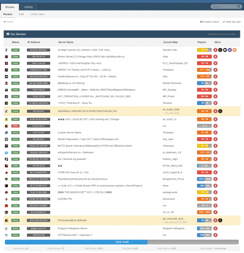 Servers are refreshed automatically with using System Scheduler by IPS, so it reduces the load on forums. App uses native sockets for UDP handling instead of stream sockets.