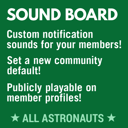 About This File Normal Price: $10 With Sound Board you can: Set a new default notification sound for your community. Allow members to customize their notification sound. Administrators can limit this ability to specific member groups. Choosing only the guest user group will force everyone on to your new default customization sound. Allow members' custom notification sounds to be playable on member profile pages. Disable the public display for your more naughty members and their naughty notification sounds... The playing of the notification sound flows as follows: 1) If a member has a custom sound, and has group permissions for a custom sound, that sound will play. 2) If not (no sound and/or no group permissions), and you have set a new default notification sound in the Sound Board ACP settings, that will play instead. 3) Otherwise, it will fall back to the IPS default notification sound. Members with group permissions to have a custom notification sound have a menu option right in the usermenu drop down. Drag and drop MP3 and WAV files and that's all that's needed. If you choose, you can toggle on the public display of a member's notification sound on the member's profile page. An HTML5 audio player holds the sound letting any visitor to the page the ability to hear it. This is a simple social feature, nothing more; a conversation starter or something along those lines. Naturally nothing will display unless the member is in a group that has permissions to have these custom sounds, and they actually have set one. Does a member have a notification sound that is not quite up to your community standards but you still want people to have their notification sound on their profile pages? Go to the problem member's entry in the ACP and toggle this feature off for this member. They still get to use their custom notification sound, but your community won't be exposed to it. Audio Formats/Limits: MP3, WAV. More can be supported in no time at all but the initial release will be just these two. I have a 5 meg limit on file size as well - no real reason other than it seems reasonable. Can be removed if needed. Instructions: Install app, config under the customization tab in the ACP, enjoy. Notes: This only changes the notification sounds that are sent out. It does nothing with the where/why/how of how notifications are generated. CIC users may need to be patient post install and after members add a custom notification sound as the CIC system takes a few minutes to duplicate/cache/CDN the sound file. Cost: $10 to get, $5/6 months. If you don't need support or a newer version feel free to skip one, renews are mainly a tip jar and to protect myself if IPS changes force me to work this over again. Support/Etc.: Support available for the time being in the IPS Marketplace topic. PMs are ok but the topic is far better. Keep in mind most devs here have other lives - we often will read a PM but we may not actually reply for quite sometime; please be patient. You are allowed to use this, after purchasing a license and downloading this from the IPS Marketplace, on one live site and any test/dev sites you have. Additional live sites require additional license purchases. Renewals (per purchase) entitle you to updated versions and ongoing support. Skip a renew if you don't need a new version or support. Support is limited to the default IPS theme and is for IPS license holders current on the application/plugin renewals (with a generous grace period). I'll give a hand, time permitting, to help you figure out what is wrong with your custom theme if there is a conflict but fixes in those cases will need to be made by your theme provider. All rights reserved. What's New in Version 1 See changelog Released November 25 No changelog available for this version. -