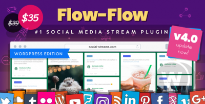Flow-Flow v4.6.4 - grabber of content from social networks for WordPress Grabber content from social networks - such as Twitter, Facebook, Google+, SoundCloud, LinkedIn, Instagram, Pinterest, Foursquare, Vine, Dribbble, Flickr, WordPress, YouTube, Tumblr, Vimeo, as well as RSS feeds from any WordPress sites. live demo How the plugin works You create flows in the Flow-Flow plugin and copy their shortcodes. Then you put these shortcodes in any widget, on any page / post on your site. The first time a social stream is displayed, it is cached (it takes longer for the initial caching, but then it will show incredibly quickly) and visitors see this cache. For example, if you set up a 20-minute cache and 10,000 users visited your site during those 20 minutes, then the plugin will only ask the API to retrieve data once, and the rest of the time users will see the cached data, which is displayed almost instantly. Considering that the server runs the cache refresh task in the background, it guarantees amazing plugin performance. -