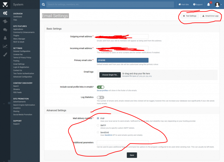 2. you have to go on your server and config your email or call your server to help you! and from the admin go to Email Settings and config if you are using namecheap than i would go to a new server they have issues all the time