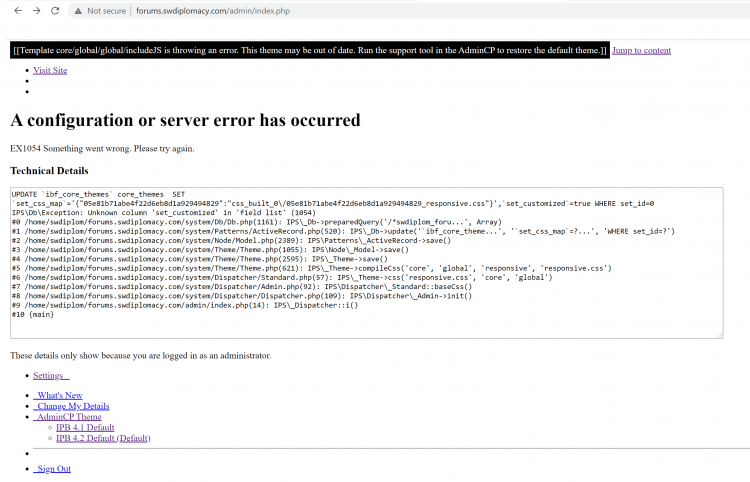9. I get this error when attempting to update to IPS 4.5.4.2 from 4.2 Is this potentially anything to do with my PHP version I am running on the site - my host only allows up to PHP 7.2, which is quite absurd since 7.3 is over two years old, but anyway - that's the only thing I can think of. However, from what I understood is IPS 4.5 recommends 7.2, but that it would still work on 7.2; maybe I'm wrong?