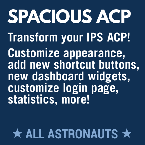 Gallery Overview: Mostly a rework of the default Gallery widget but with better formatting. Note the default widget (and this one) only tracks the storage space of the original images, not all the copies actually made and used by the IPS system - those stats are not saved anywhere. Spacious ACP 11 now includes the four newest images along with the four most viewed. Widget is fine wide or side.