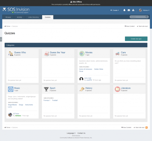 Quizzes is a fun (graded quiz - one right answer) application which allows you and your members to add Quizzes to your forum. With leaderboards, categories and a unique layout, The Quizzes is sure to be a hit with your members. The Quizzes comes, among other things, with the following features: