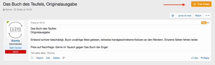 24. ACP --> Template --> thread_view and find: <xf:breadcrumb source="$forum.getBreadcrumbs()" /> Replace with the code below: <xf:breadcrumb source="$forum.getBreadcrumbs()" /> <xf:pageaction if="$forum.canCreateThread()"> <xf:button href="{{ link('forums/post-thread', $forum) }}" class="button--cta" icon="write"> {{ phrase('post_thread') }} </xf:button> </xf:pageaction>