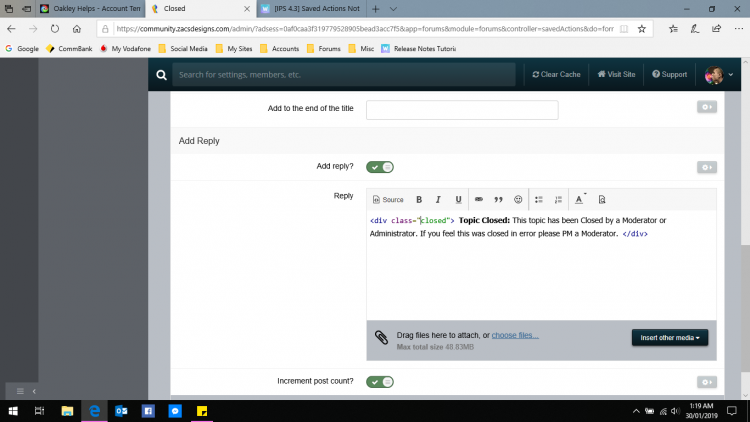 Jeffrey, I got the correct error message when I did mine, but even when logged in, and my Admin Group is 4 it still just showed the message and no option to login, even with clicking the Admin CP link from inside the Forum.